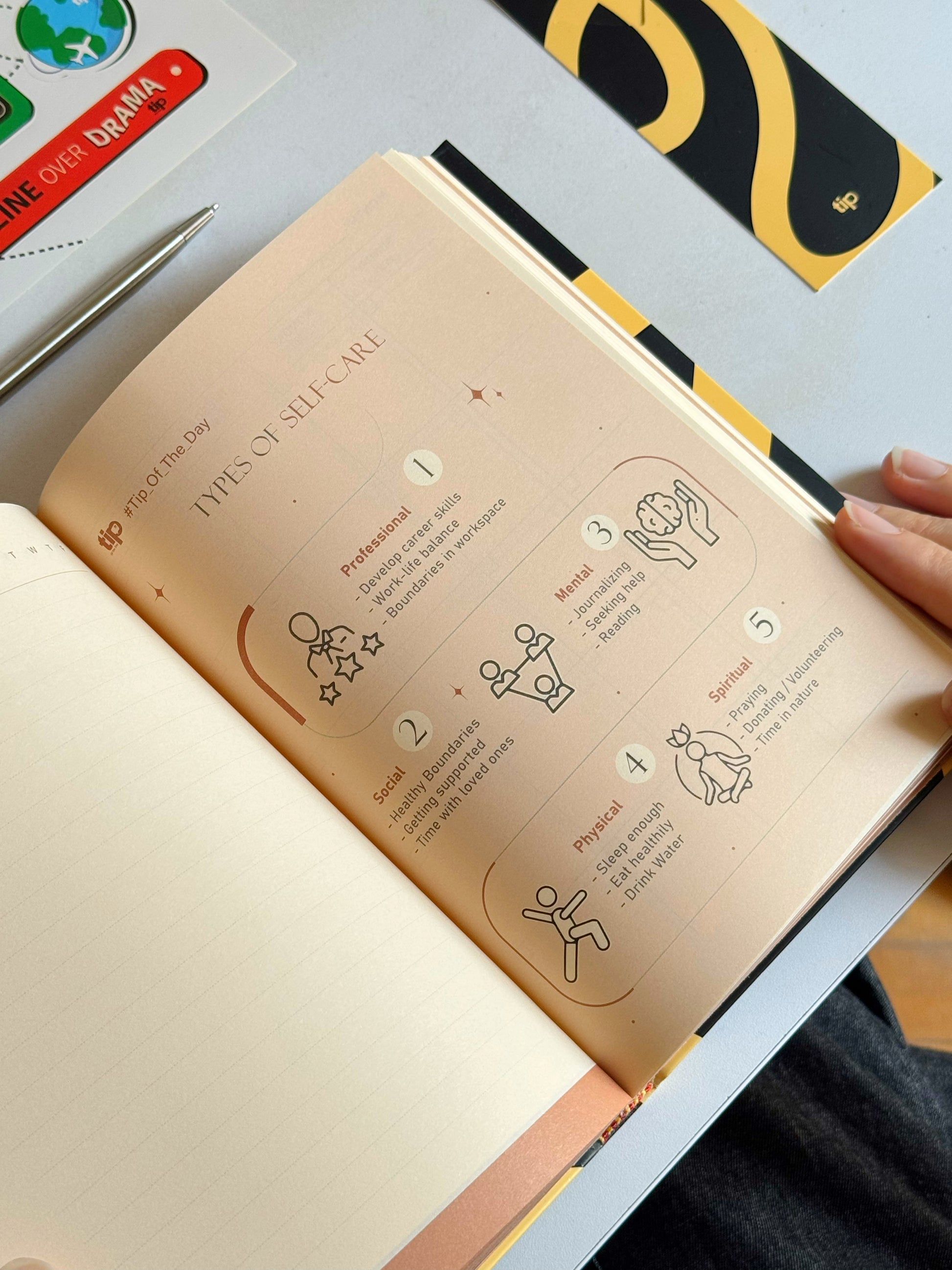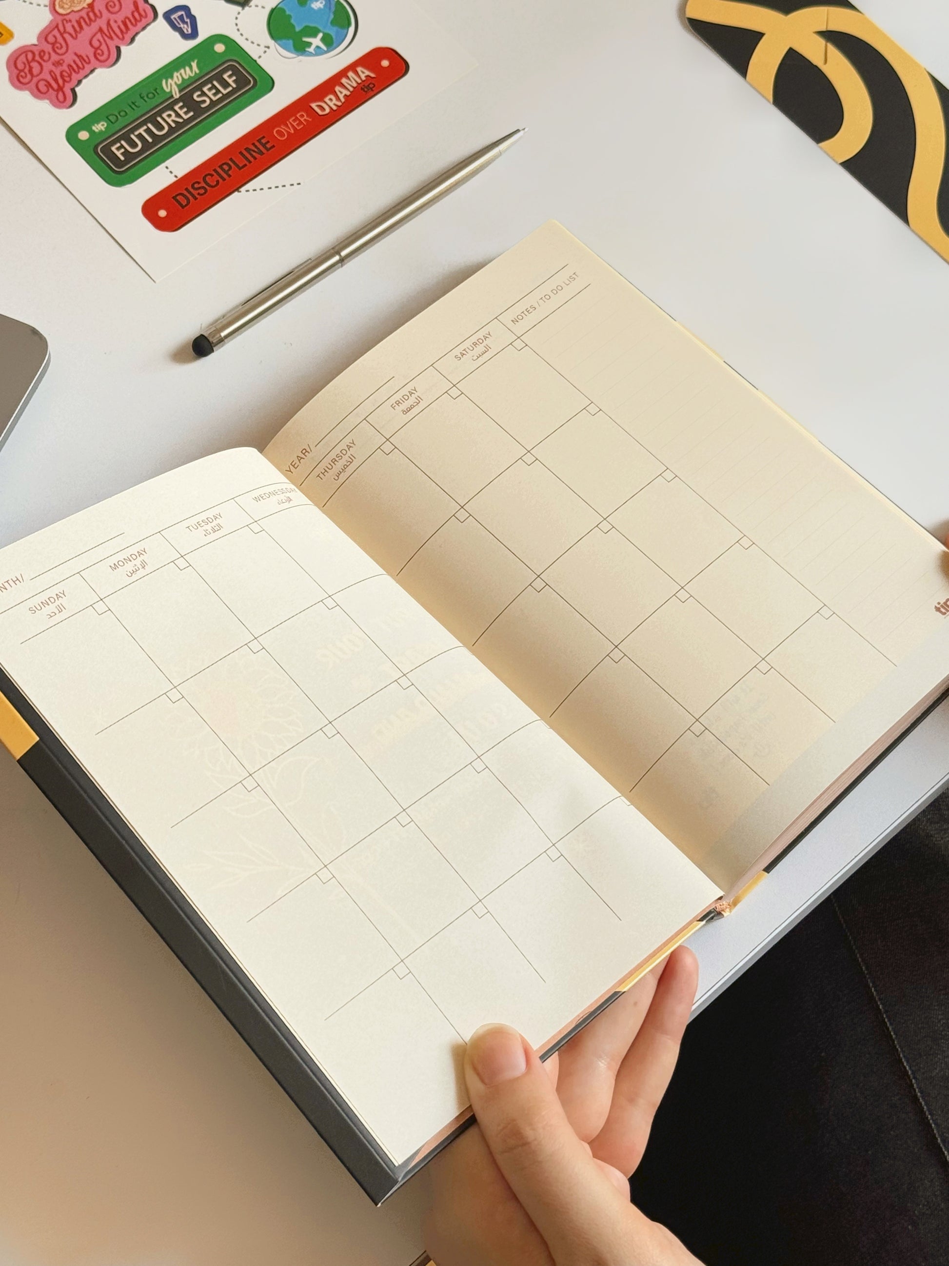 أجندتنا ليست مجرد أداة تنظيم، بل هي رفيقك الذي يساعدك على تحقيق التوازن بين الإنتاجية وسلامك الداخلي. تحتوي الأجندة على 12 موضوعًا ملهمًا تدعمك في رحلة تطويرك لنفسك.